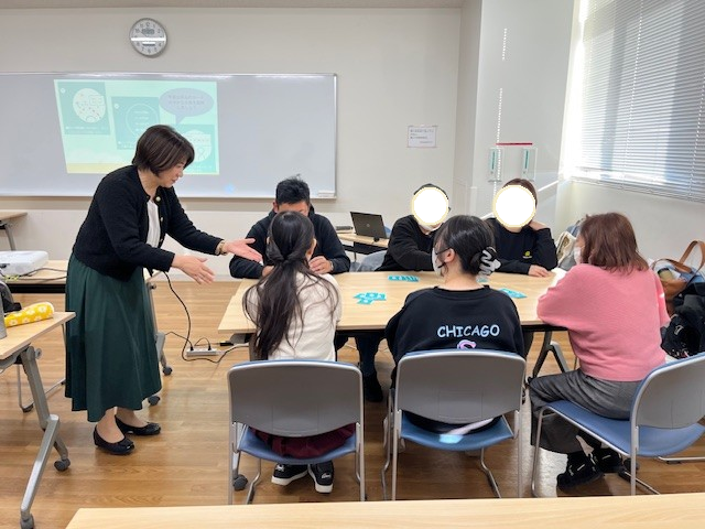 後半は頭を柔軟にして考えないと解けないクイズで隣の人と一緒に考えたり、またカードゲームをグループに分かれて実際に楽しむ時間もあり、声をあげて競うなどして、皆さん笑顔がいっぱい溢れ和やかな雰囲気で学ぶことができました。