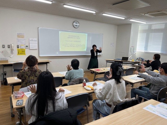 始めは受講者も緊張の様子でしたが、一緒に手遊びをしたり、紙芝居の呼びかけを一緒にしたりしていくうちに、だんだんと場も和んできて、最後の手遊び♪ホルディア♪では、手もしっかり動かし一緒に歌って盛り上がっていました。
